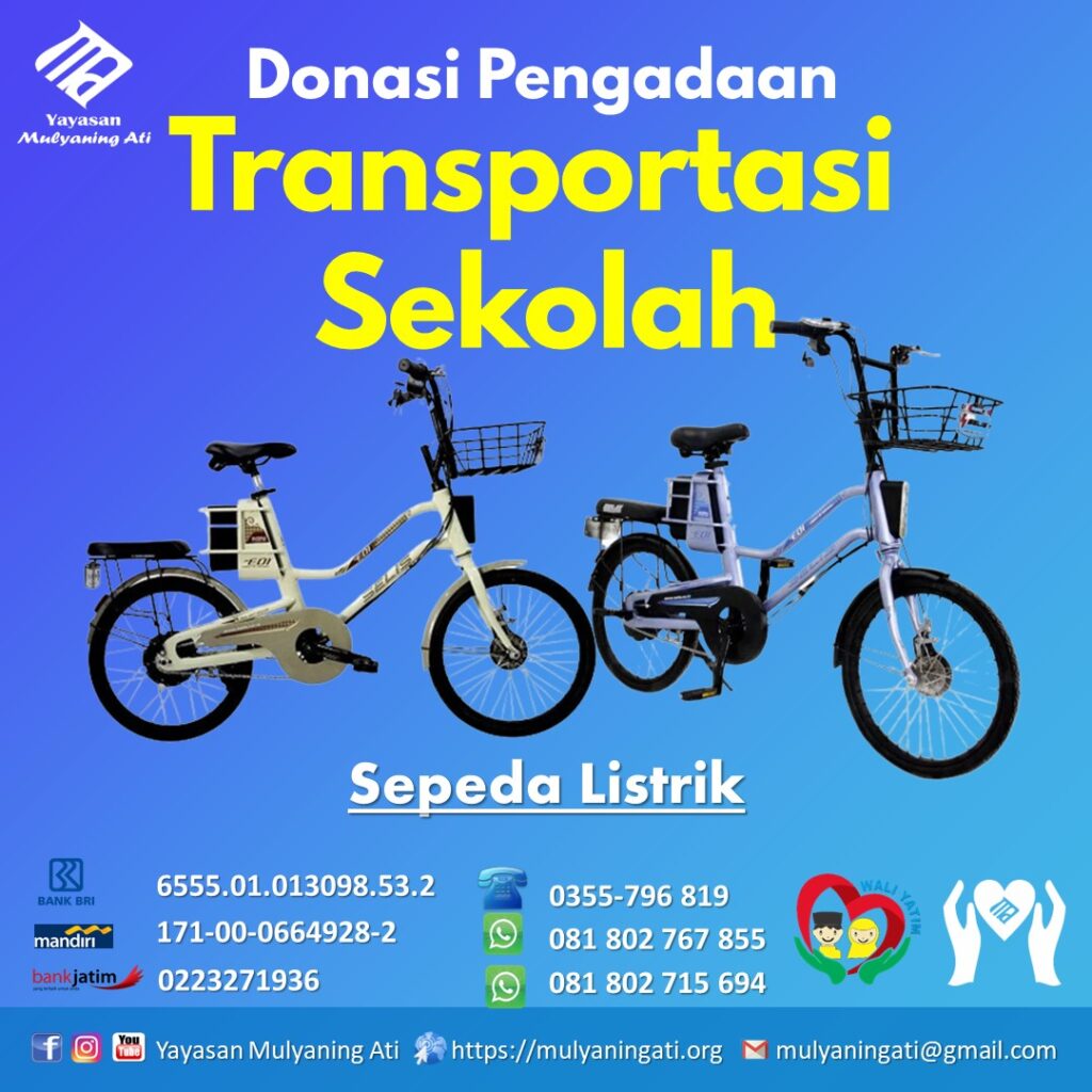 Untuk itu kami mengadakan program “Pengadaan Sepeda Listrik Untuk Alat Transportasi Sekolah” bagi anak asuh di Panti Asuhan Mulyaning Ati, guna mendukung kegiatan pendidikan, yang merupakan bagian utama dari pelayanan kami.